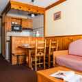 "Le Cheval Blanc Privilège", 2-room apartment 27 m2. Rustic furnishings: living/sleeping room with 1 sofabed, 1 pull-out bed, dining table and satellite TV (flat screen). Exit to the balcony. 1 room with 2 beds. Kitchenette (2 hot plates, mini-oven, dishwasher, kettle, microwave, electric coffee machine). Bathroom, sep. WC. Electric heating. Small balcony. Partial view of the ski run. Facilities: safe, children's high chair, baby cot. Internet (WiFi, free). Please note: smoke alarm.