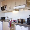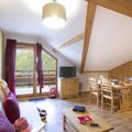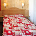 "Odalys Référence Le Grand Panorama 1", 3-room chalet 60 m2 on 2 levels. Rustic furnishings: 2 rooms, each room with 1 french bed (140 cm, length 190 cm). Sleeping alcove with 1 x 2 bunk beds. Bathroom, sep. WC. Upper floor: living/sleeping room with 1 sofabed, 1 pull-out bed, dining table and TV (flat screen). Exit to the balcony. Open kitchen (dishwasher, 4 ceramic glass hob hotplates, toaster, kettle, electric coffee machine, combination microwave). Electric heating. Small balcony. Facilities: children's high chair, baby cot (extra). Internet (WiFi, free). Please note: non-smokers only. Maximum 1 pet/ dog allowed. Smoke alarm.
