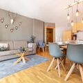 Inside the apartment, you will be welcomed by an atmospheric space, equipped with all conveniences for a carefree stay. Besides standard furnishings, such as a (shared) washing machine and tumble dryer with free use, the flat is equipped with a cooker, Nespresso coffee machine to make your mornings more enjoyable and a dishwasher for added convenience. For entertainment, there is a Smart TV.