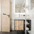 The 62m² Apart Franz-Josef on the 2nd floor has two bedrooms, each with a double box-spring bed and a single box-spring bed. There is also a deluxe bathroom with shower and WC as well as a large eat-in kitchen and a fantastic terrace with mountain views. A lift leads to all floors.