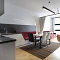 Inside, two separate double rooms await you, both of which offer direct access to a cosy balcony. The flat also has a pull-out sofa bed, which can comfortably accommodate up to six people. For your convenience, there are two separate bathrooms with WC. They are modernly equipped with a radio, make-up mirror, hairdryer, shower and a towel dryer - towels are of course also provided for you. The spacious living and dining area includes a fully equipped kitchen, a large dining table and the aforementioned sofa bed. The kitchen equipment leaves nothing to be desired: Dishwasher, microwave, ceramic hob, oven, fridge with freezer compartment, Senseo coffee machine, kettle, toaster and crockery are at your disposal.