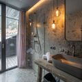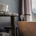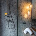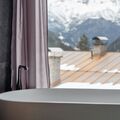 The marvellous view can also be enjoyed from the bathroom, which is equipped with a free-standing bathtub and looks directly onto the Alpine peaks.
