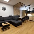 The interior of the flat is equipped with underfloor heating throughout, providing cosy warmth on cooler days. An elegant and open-plan living room invites you to relax, while the shared use of the washing machine and tumble dryer in the building adds to the convenience during your stay. Amenities also include a kettle and dishwasher to make your stay comfortable and convenient.