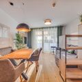 Inside the flat you will find a harmonious combination of comfort and functionality. Underfloor heating provides cosy warmth throughout the flat, while the kitchen is equipped with modern amenities such as a kettle and dishwasher. A washing machine and tumble dryer are available for communal use, allowing you to enjoy a longer stay without any worries. This lovingly designed holiday flat makes it easy to feel at home.
