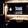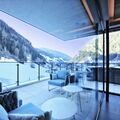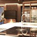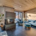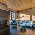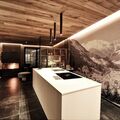 The open-plan, light-flooded living and dining area, with tables and comfortable chairs for up to four guests, is separated from the terrace by large glass doors. There is a cosy sofa with a fireplace in the living room so that you can enjoy the wonderful alpine atmosphere of the Paznaun and relax in a warm and cosy atmosphere even in cooler weather. Directly connected to the living and dining room is an elegant, modern, fully equipped high-end kitchen where you can prepare unforgettable cocktails, snacks and meals with your loved ones.