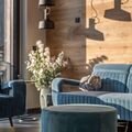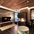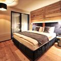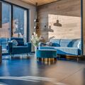 The penthouse is located on the fourth floor of the Silvretta residence and is furnished in a glamorous, contemporary design with light and black wooden furniture, high-quality appliances and great attention to detail.