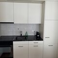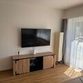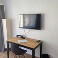 Inside, guests will find a bright living room with an open-plan kitchen, which is well-equipped for preparing meals. The living area offers a comfortable sofa bed and a smart TV for cosy evenings in. The bedroom has a large double bed, a desk ideal for working from home and a spacious wardrobe. The bathroom has a shower and all the essential toiletries guests might need. The flat features a clean, modern design with warm wooden accents and soft, welcoming lighting that creates a cosy atmosphere.