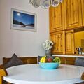 The apartment comfortably accommodates up to 5 people in a bedroom with a double bed and a single bed and two single beds (wall beds) in the living room. The open living and dining area is spacious and offers enough space to relax. From the living room and the bedroom you can access the balcony, from which you have a beautiful view of the mountains. There is a well-equipped kitchen with a hatch to the dining area, where five people can sit comfortably around the dining table. In the kitchen you will find everything to look after yourself. A new oven, dishwasher, refrigerator, coffee maker complete the facility.