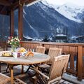 Large terrace with direct views of Mont Blance, table and 6 chairs, plus sun lounger