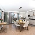 Large open plan living area with bean bag TV area plus dining table with 8 chairs
