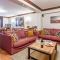 Located in possibly the most enviable location in Chamonix, with garden overlooking the river Arve and facing Mont Blanc, and in the middle of all the shops, restaurants and bars, Pothecary apartment is one of our most popular apartments in Chamonix. It is is extremely spacious at 120 sqm, with a huge living room including 3 full size sofas and two matching armchairs, a newly installed modern kitchen, an entertainment area with 43 inch flatscreen TV (Sky TV, surround sound, DVD player etc) and an ipod dock, Wifi internet access and a second TV and DVD player too. Pothecary apartment has 3 good sized bedrooms (one double, one twin / king bedroom and a 3rd twin bedroom ) as well as one of the sofas in the living room which converts into a sofabed in the living room, therefore sleeping 8 people very comfortably. The sunny, private garden of this apartment in Chamonix backs onto the river and has table and chairs and splendid views of Mont Blanc. If you want to be slap bang in the middle of town but have your own private terrace, and secure parking, plus stay in a truly spacious accommodation, then Pothecary apartment is the perfect retreat for you.