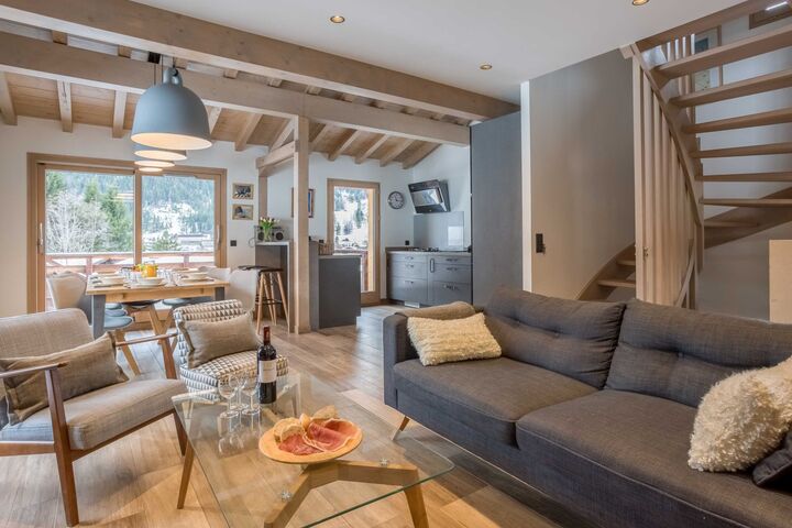 Chalet de l'Ours is a newly renovated, 5 bedroom, luxury Chamonix property sleeping 6-10 people, available to rent and ideal for families looking for a Chamonix base. Featuring 5 bedrooms and 3 bathrooms, the chalet is located in a quiet area of Chamonix, but also just 10 minutes' walk into the centre. The chalet has a lovely open plan living room with American-style kitchen, dining area and lounge with feature fireplace, as well as a door leading onto the large (58 sqm) sunny terrace facing Mont Blanc. Chalet de l'Ours has underfloor heating throughout, and there is also a large garden, ski storage and plenty of parking including a covered space for one car. There is a washing machine and tumble dryer in this luxury Chamonix property, as well as wifi internet and Nespresso coffee machine too.