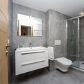 There's one double bedroom, with plenty of wardrobe space for up to 4 people. Additionally, the sofa converts into a double bed to sleep 2 more people. The apartment's bathroom has a walk-in shower and WC.