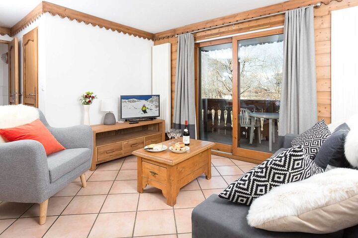 Ginabelle 14 apartment is a central, 2 bedroom apartment which benefits from luxury holiday rentals amenities of swimming pool, sauna, hammam and gym access within the residence. The apartment has one master super-king bedroom with ensuite bathroom, as well as a second bedroom which can be made as a twin room or super-king. In addition there is a family bathroom with bath and overhead shower, as well as a second separate WC. In the living area are a comfy sofa, TV and games, as well as doors which open out onto a spacious balcony with sweeping views of Les Planards ski area and up the valley towards Le Tour. The adjoining dining area in Ginabelle 14 apartment has seating for 6 with three dining chairs and a bench along one side, while the kitchenette is equipped with more luxury holiday rental essentials, including dishwasher and Nespresso coffee machine. The apartment also benefits from underground parking, private ski locker and wifi internet access.