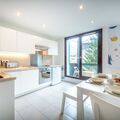 The kitchen and dining area of Rupicapra apartment open onto the small private balcony which enjoys a view of Mont Blanc, as does the master bedroom. All bedrooms benefit from underfloor heating and ensuite bathroom access: relax in the master bedroom with its high ceilings, next door the bunk room is bright and airy, and both rooms share a Jack-and-Jill ensuite shower room with WC. The third bedroom has its own ensuite shower room and toilet, and boasts a king size bed under the sloping roof. The Chamonix rental apartment has access to the communal underground car park of Chamonix Sud for one car and a ski locker, as well as ski boot storage in the utility room. The utility room also offers a combined washing machine & tumble dryer.