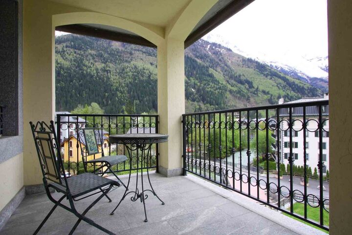 Situated in one of the best locations in Chamonix, with a south-facing balcony terrace and stunning views of Mont Blanc and overlooking the river Arve, Residence des Alpes 302 appt is a very spacious 2 bedroom, 2 bathroom apartment is right in the middle of Chamonix's pedestrian high street. This accommodation in Chamonix has a large living room with lounge seating around a log fire, plus a separate dining area with access to the balcony where there is an additional table and chairs. Residence des Alpes 302 appt also has a well-equipped kitchen with full size oven, dishwasher, washing machine and fridge freezer. There is a flatscreen TV and DVD player. There are two double bedrooms and two bathrooms, one with a bath, the other with a shower. Additionally, there are two Z-beds (fold out single beds) and also the sofa converts into 2 single beds too. There is secure underground parking for one car.