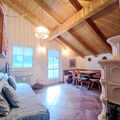 "Cesa sot Larsec", 4-room apartment on 2nd floor. Very comfortable and cosy furnishings: entrance hall. Living/dining room with open-hearth fireplace (only for decoration). Exit to the balcony. 1 double bedroom. 1 room with 1 x 2 bunk beds. 1 room with 2 beds (80 cm, length 190 cm). Open kitchen (oven, dishwasher, 4 induction hot plates). Shower/bidet/WC, bath/shower/WC. Heating available only from 01.12. to 31.05. Facilities: washing machine, hair dryer. Garage on the property. Please note: non-smokers only. Fire extinguisher, no lift.