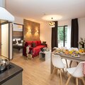 Kitchenette(toaster, cooker, microwave, dishwasher, fridge), Living/bed room(double sofa bed), bedroom(double bed or 2 single beds), bedroom(double bed or 2 single beds), bathroom(bathtub or shower, toilet)