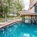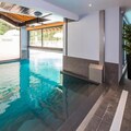The chalet in Chamonix offers the perfect mountain getaway for families or friends, set in a prestigious location with stunning views of the surrounding peaks. Combining traditional wood and stone architecture, this residence provides spacious, comfortable accommodations with large bay windows and private balconies or terraces. After a day of skiing or hiking, unwind in the heated semi-covered swimming pool, relax in the wellness area featuring a hammam, sauna, hot tub, and sensory shower, or stay active in the gym.
