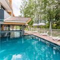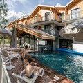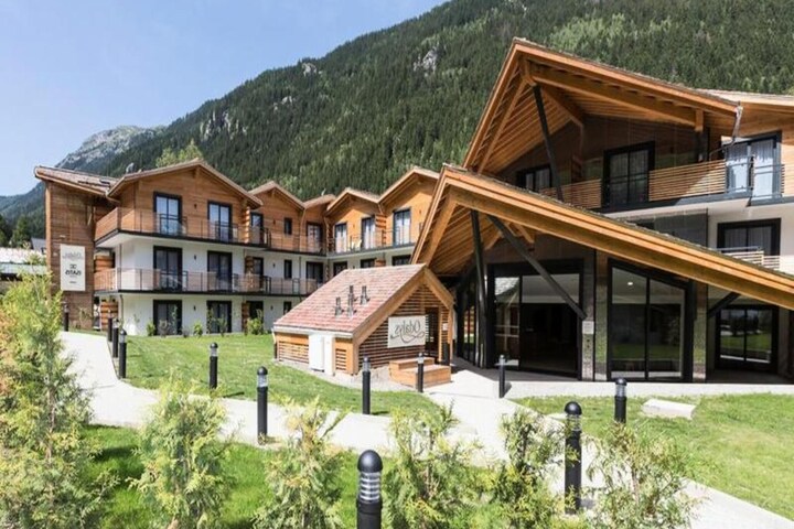 The accommodations feature spacious living areas with large bay windows and either a balcony or terrace. After a day of skiing or hiking, unwind at the heated semi-covered swimming pool, relax in the wellness area with a hammam, sauna, and hot tub, or stay active in the fitness room.