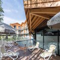 In addition to the spacious living quarters, the apartment features a well-equipped kitchen for those who prefer to cook their own meals. The residence also boasts a range of recreational amenities to enhance guests' stay, including a heated semi-covered swimming pool with free access from 10 AM to 7 PM, and additional wellness facilities such as a sauna and hammam (with an extra charge). For guests who wish to maintain their fitness routine, a fitness room is available. Covered parking is provided for one vehicle per apartment, ensuring ease of access. Additional services, such as breakfast and sauna access, are available for an extra fee, enhancing the overall comfort and convenience of the stay.