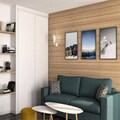 This cozy 42m² apartment is located in the La Rivière residence, just 300 meters from the Aiguille du Midi cable car and a short walk from Chamonix Sud's shops, restaurants, and bus stops. The apartment features a living room with a sofa bed (sleeps 2), a corridor with two single bunk beds, and a fully equipped kitchen. It also includes a double bedroom and two bathrooms, one with a bathtub and WC, and the other with a shower and WC. The apartment offers a balcony with mountain views, providing the perfect spot to relax after a day of exploring.