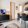 - Dining area and lounge area with a TV, double sofa bed (160x190)