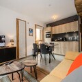 - Equipped kitchen area (induction hob, a combination oven/microwave, a refrigerator with freezer compartment, a dishwasher and a hood, hand blender, crepe maker, raclette maker, filter coffee maker, Nespresso, kettle, toaster)