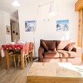 This 53m² apartment is a perfect retreat for up to 4 guests, offering a comfortable stay at the foot of the Savoy slopes. The apartment features two cozy bedrooms: one with a double bed and terrace access, and the other with two single beds. It also includes a spacious living and dining area with a large terrace offering a breathtaking view of Mont Blanc, furnished with garden furniture for outdoor relaxation. The apartment is non-smoking and does not allow pets, ensuring a clean and peaceful environment throughout your stay.