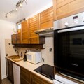The apartment includes a fully equipped separate kitchen with an oven, microwave, ceramic hob, dishwasher, refrigerator, and a variety of appliances like a filter coffee maker, Nespresso, toaster, and raclette machines. A shower room and separate toilet add convenience, and a ski room is available for storing equipment. Other amenities include private underground parking (height limit of 2.05 meters), free Wi-Fi, and provided linens and bathroom products, ensuring a hassle-free stay.