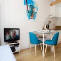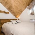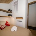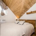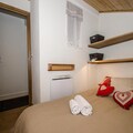This 33m² apartment, located on the 2nd floor (without elevator) of the "Les 2 Chamois" residence in the residential area of Pècles, can accommodate up to 4 people. The living and dining area is equipped with a TV and PS2, perfect for relaxation after a day of adventure. The open kitchen includes a fridge with a freezer compartment, induction hob (2 burners), mini-oven, KRUPS coffee maker, and kettle. The apartment has two double bedrooms (140x190 and 160x190), and a bathroom with a bath/shower and toilet. Pets are not allowed, and it is a non-smoking apartment.