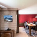 This spacious 100m² apartment, classified 3 stars, accommodates up to 8 people across 3 bedrooms. Located on the 1st floor of the Espace Montagne residence in the heart of Chamonix, it features a cozy living and dining room with a double sofa bed (160x200), TV, and DVD player. Enjoy stunning views of Mont-Blanc from the terrace. The apartment includes a fully equipped kitchen with modern amenities such as a microwave, oven, refrigerator, freezer, dishwasher, induction hob, pressure cooker, coffee maker, kettle, toaster, and traditional raclette and fondue machines.