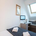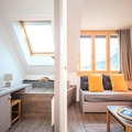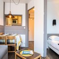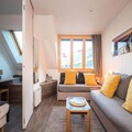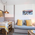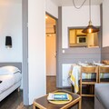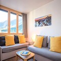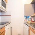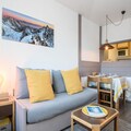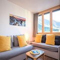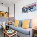 This renovated 29m² apartment, classified 2 stars, comfortably accommodates up to 4 guests. Located on the 7th floor of the Chamois Blanc residence in the Chamonix Sud district, the apartment offers easy access to ski bus stops and is just 450 meters from the center of Chamonix. It features a cozy living/dining room with a pull-out sofa bed for two and a TV. The semi-closed kitchen is equipped with a fridge, dishwasher, mini-oven, ceramic hob, Nespresso machine, kettle, and hand blender. The bedroom includes a double bed (140x190) with removable sliding doors to the living room and a TV.