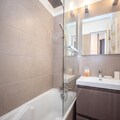 Additional amenities include Wi-Fi, a bathroom with separate toilets, and underground parking with a height of 1.85m. A ski room is also available for storing equipment. The apartment is non-smoking, and pets are not allowed. A deposit is required, and cleaning services are included, excluding the kitchen and trash.