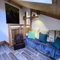 This charming 45m² duplex apartment, classified 3 stars, is perfect for 4 people. It features a cozy living area with a TV, DVD, and wood stove, along with a fully equipped kitchen including a dishwasher, oven, refrigerator, and ceramic hob. The bedroom on the ground level has a double bed (140x190), and a walk-in shower bathroom with separate toilets. The apartment is non-smoking and pets are not allowed, ensuring a tranquil atmosphere. Private parking is available, along with a basement laundry facility.