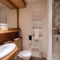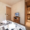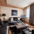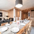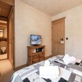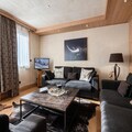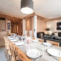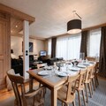 The apartment offers five bedrooms, including two en-suite rooms with single beds, a safe, and private shower rooms. The spacious layout also includes a terrace with garden furniture, making it ideal for relaxation after a day of activities. Additional amenities include a ski room, underground parking with a height limit of 2.3m, and Wi-Fi. Pets are allowed, with a small supplement.