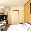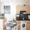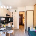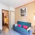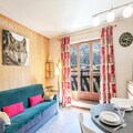 This charming 20m² studio, classified 2 stars, can accommodate up to 3 people. Located on the 2nd floor with an elevator in the Les Sommets residence, it offers a fantastic location near the Aiguille du Midi and the center of Chamonix. The studio features a fully equipped kitchen with ceramic hob, microwave, mini oven, washing machine, and more. The living area includes a Bed-Express double sofa bed and a TV, with bunk beds located in the entrance.