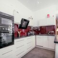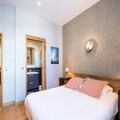 This 108m² apartment offers a comfortable stay for up to 6 guests. It features a bright living room with a dining area and lounge, equipped with a TV. The large kitchen is fully furnished with modern appliances, including an oven, refrigerator, microwave, induction hob, hood, dishwasher, kettle, Nespresso machine, and French press coffee maker. The property is non-smoking and does not allow pets, ensuring a clean environment. There is a non-private outdoor parking area with a barrier for added security. A credit card deposit is required before arrival.