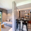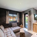 The chalet includes a fully equipped kitchen with modern appliances such as a fridge, oven, microwave, induction hob, and dishwasher. A laundry room with a washing machine and dryer, along with a ski boot dryer in the garage, add to the convenience. The terrace offers garden furniture and deckchairs, perfect for relaxing and enjoying the views.