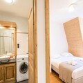 The apartment features a fully equipped kitchen with modern appliances such as a ceramic hob, oven, microwave, refrigerator, freezer, and dishwasher. For added convenience, a washer-dryer is available in the bathroom. Independent toilets and additional amenities like a fondue set and raclette set ensure a comfortable stay.