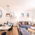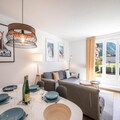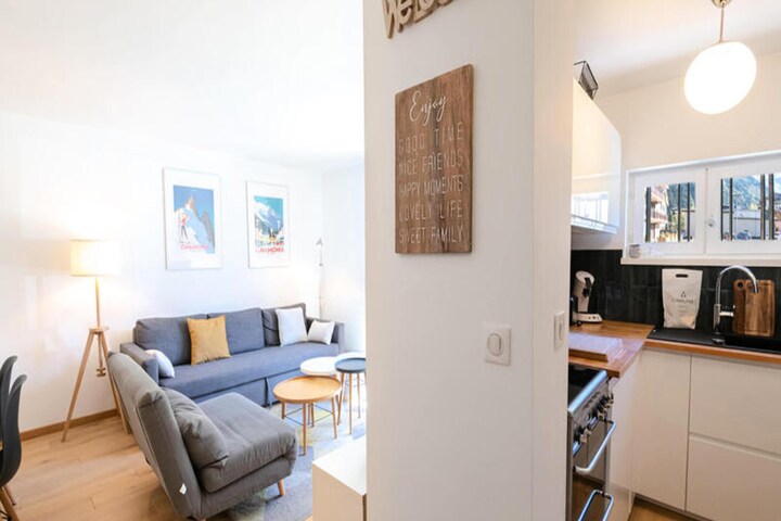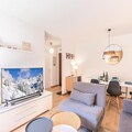 This charming 40m² apartment accommodates 2-4 people, providing a cozy retreat in the heart of Chamonix. The apartment features a living/dining room with a TV, soundbar, and a double sofa bed (140x190). The bedroom has a 160cm double bed, offering a restful space. With a south-facing terrace and garden furniture, guests can enjoy stunning Mont-Blanc views. The property is non-smoking, pet-free, and includes Wi-Fi. Private underground parking, a ski locker, and easy access to public transport add to the convenience.