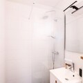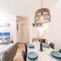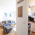 The apartment features a fully equipped kitchen with a ceramic hob, oven, refrigerator, freezer, toaster, and coffee makers (filter and Senseo). A shower room with a towel dryer and washing machine adds comfort to your stay. Guests also have access to the residence’s garden, providing a peaceful space to relax.