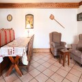 This charming apartment offers a cozy and comfortable retreat for your Alpine vacation. Spanning 60 m², the property includes a living room with a sofa and two armchairs, and a dining area accommodating up to eight guests. With three bedrooms—one with a double bed and two with twin beds—it is ideal for families or groups. The apartment features two bathrooms, one with a bathtub and the other with a shower and WC, as well as a separate toilet. A balcony equipped with a table and six chairs invites you to enjoy the fresh mountain air and scenic views.