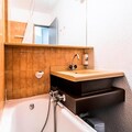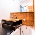 The apartment comes with a fully equipped kitchen area, a bathroom with a bathtub, and a separate toilet. The furnished balcony, complete with a small table and deckchair, offers a fantastic view of Mont Blanc, perfect for relaxing after a day of activities. With a surface area of 28m², this apartment offers comfort and convenience for a memorable Chamonix stay.