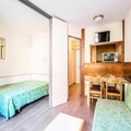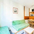 Located in the heart of Chamonix, this cozy apartment offers an ideal base for your mountain getaway. The living room includes two sofa beds (one with a trundle bed), a dining table with four chairs, and a flat-screen TV for relaxation after a day of adventure. The bedroom features a comfortable double bed, while the bathroom includes a bathtub and a separate toilet. The kitchen area is open to the living room, allowing for easy interaction. A covered parking space is available, ensuring convenience during your stay. The property offers excellent value for money with all essential amenities.