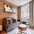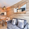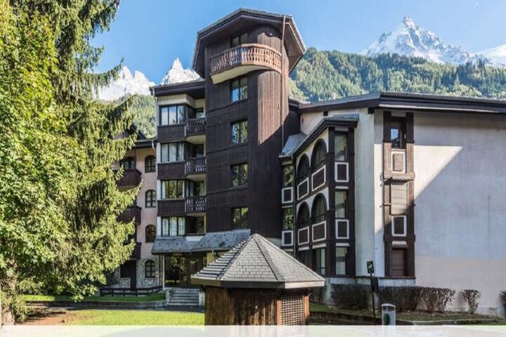 This lovely apartment is located in the heart of Chamonix Sud and offers a cozy living space with a double bed and a sofa bed, accommodating up to 4 guests. Pets are allowed (additional charges may apply). The apartment features a bright interior with a stunning balcony that offers panoramic views of Mont Blanc and its glacier. Bed linen is included, and the unit has a separate toilet and bathroom with a bathtub for added comfort.