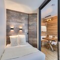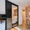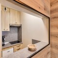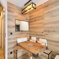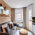 Inside the apartment, you’ll find a fully equipped kitchen with all the essentials for cooking, a dining area with a table and chairs, and a comfortable living room space. The apartment includes a shared parking space in the Chamonix Sud car park, located just 200 meters from the building. Additional amenities such as a wellness center and sauna are available at a nearby hotel for ultimate relaxation after a day of exploring.