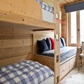 The apartment features three bedrooms, including a double bedroom en suite with a bathtub and shower, a second double bedroom, and a room with bunk beds. There is also a separate shower room and toilet, along with a washing machine and dryer for convenience. A ski room is available for storing gear, and guests will receive linen, bathroom products, and end-of-stay cleaning (excluding kitchen and trash). Please note, wood for the fireplace is not included.