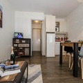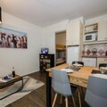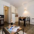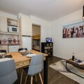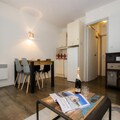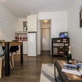This 25m² studio, classified 2 stars, is designed for up to 4 people and is located on the 5th floor of a residence with an elevator in Chamonix South. The studio includes an entrance with two bunk beds (80x190), a lounge area with a double sofa bed, and a TV. The space is non-smoking and pet-free, making it a comfortable choice for families or small groups. A 400-euro deposit is required before arrival.