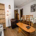 The thoughtfully designed space features a comfortable lounge area with a double sofa bed, a TV, and a dining corner that opens onto the balcony. The separate, fully equipped kitchen includes modern appliances such as an induction hob, refrigerator, dishwasher, and even raclette and fondue sets for a true Savoyard experience. A cozy double bedroom ensures restful nights, while the bathroom with a bathtub and washing machine adds to the convenience. With Wi-Fi, linens provided, and beds made upon arrival, every detail has been considered for your comfort.